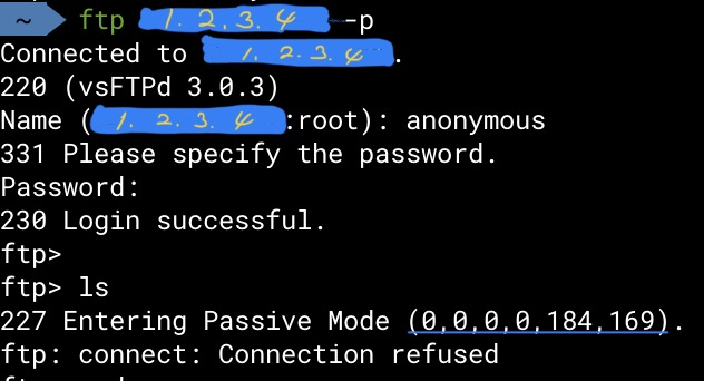 227 Entering Passive Mode (0,0,0,0,...) when connecting to vsftpd FTP server