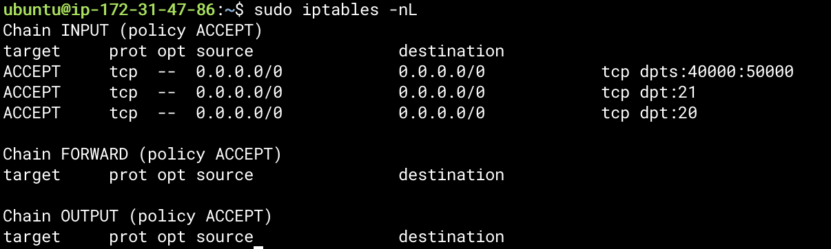 sudo iptables -A INPUT -p tcp --dport 20:21 -j ACCEPT