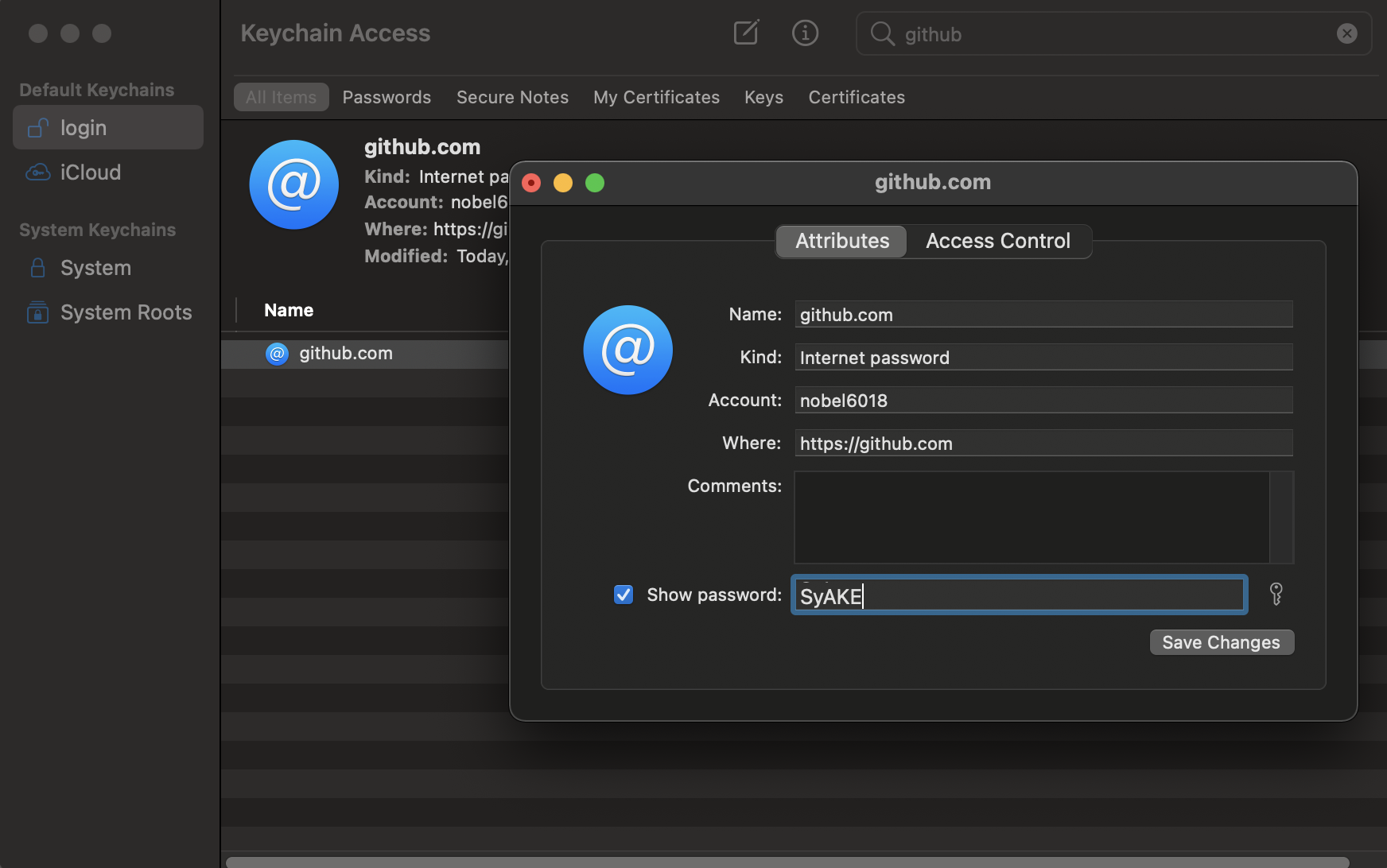 4. Keychain Access에 들어가셔서 위에 복사한 access token을 넣어줍니다